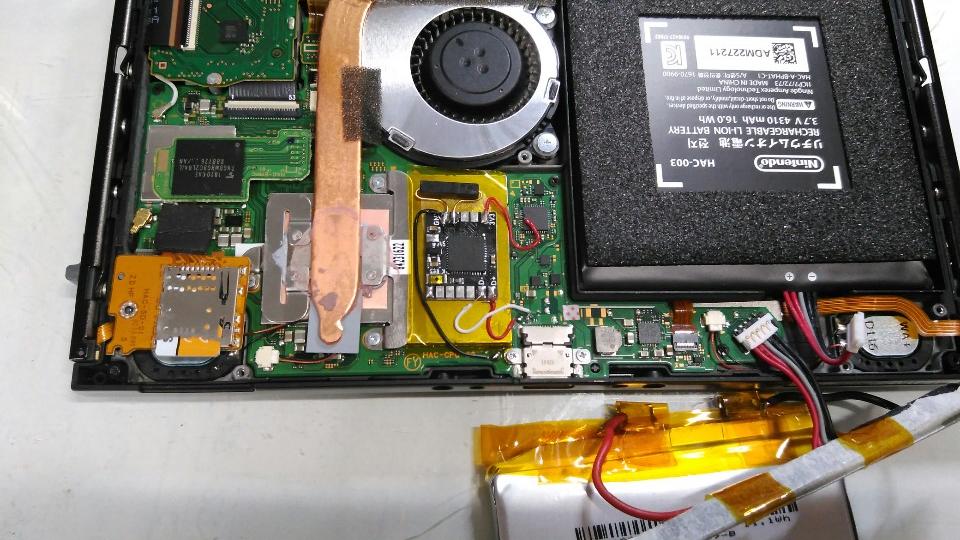 스위치 기판에 납땜하는 방식으로 내장해 버리면 부팅이 되지 않을까 해서 시도.